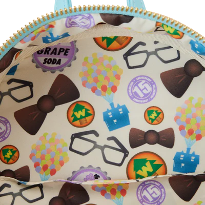 Le mini sac à dos Loungefly Disney-Pixar Up 15th Anniversary Spirit of Adventure est fabriqué en cuir végétalien (polyuréthane). Le sac a des bretelles réglables et du matériel doré brillant. Les caractéristiques supplémentaires incluent des détails appliqués, gravés, brodés et imprimés. Notez la doublure intérieure coordonnée.